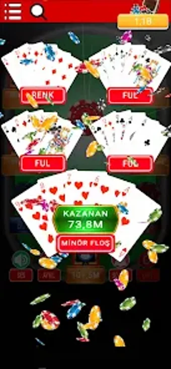 Türk Pokeri, Android platformunda oynanan eğlenceli bir kart oyunudur. Bu oyun, 2-5 oyuncuyla oynanabilen ve her oyuncunun kart sayısına göre değişiklik gösteren bir yapıya sahiptir. Oyun, gerçek para ile oynanmamakta olup, kazanılan fişler sadece eğlence amaçlıdır. VIP üyelik seçeneği ile reklamsız bir oyun deneyimi ve ek özelliklere erişim sağlamak mümkündür. Reklamlı versiyonu da mevcut olup, bazı özellikler sınırlıdır ama temel oyun deneyimi sunulmaktadır.